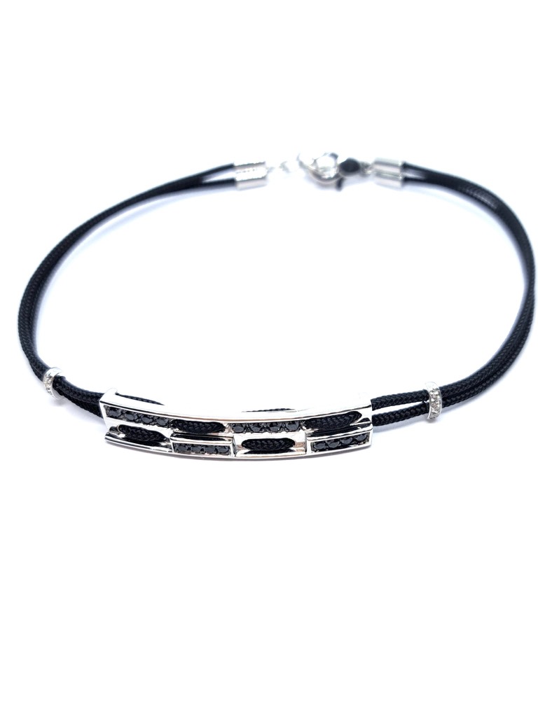 6,10 gram 18 karat WG, 0,04 ct diamanten briljant geslepen GVS, 0,27 ct zwarte diamanten, zwart koord