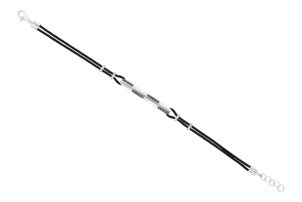 5,90 gram 18 karat WG, zwarte diamanten 0,22 ct, 0,05 ct diamanten briljant geslepen GVS, zwart koord