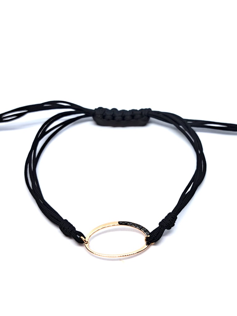 18 karat RG, 0,036 ct zwarte diamanten, zwart koord