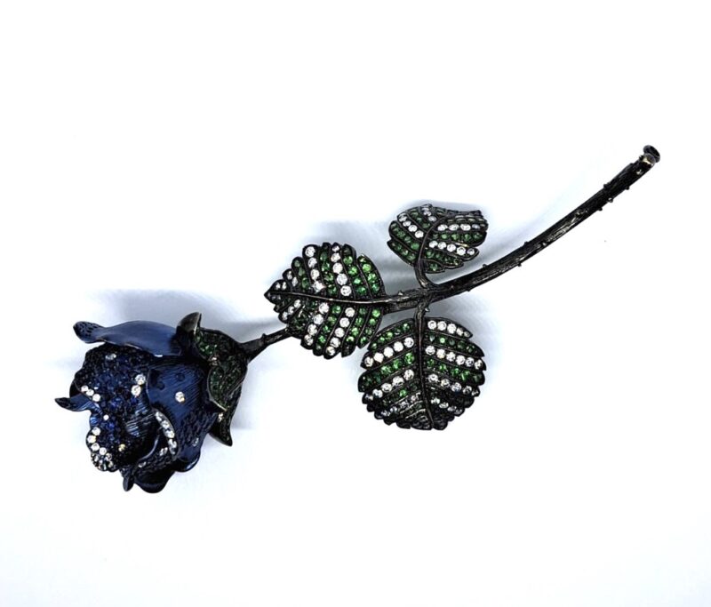 18 karat WG, diamanten, blauwe saffieren, tsavirite, unicum