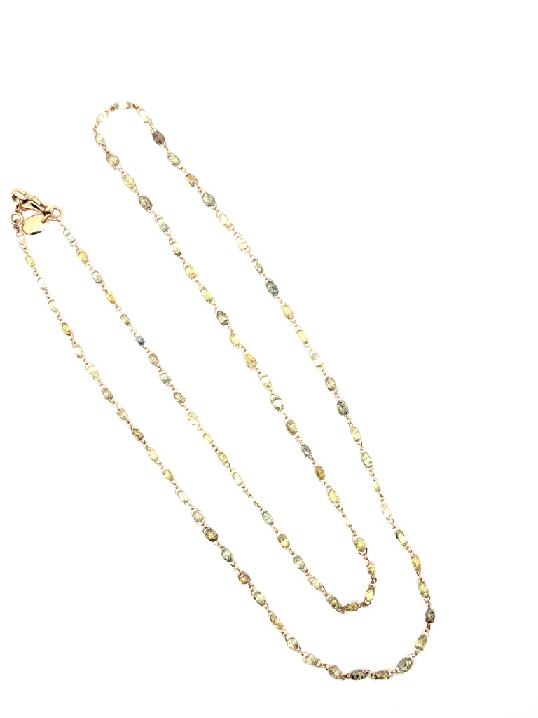 2.30 grams 18 karat RG, 16.57 ct natural champagne-coloured briolette-cut diamonds, unique piece