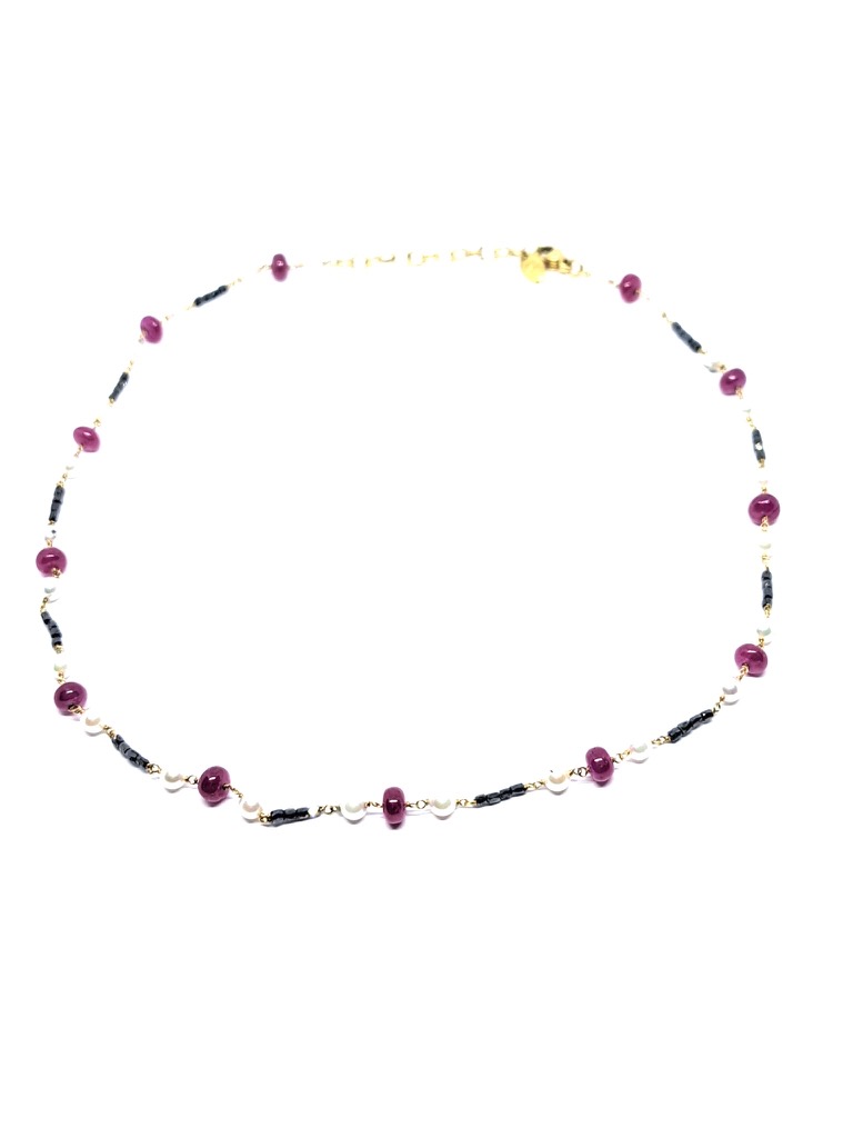 1.82 grams 18 karat RG, 1.87 ct brilliant-cut diamonds, pearls 8.41 ct, rubies 10.21 ct, unique piece