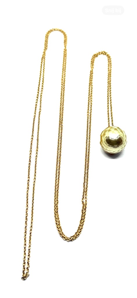 Tahiti parel barok, druppel form gefaciteerd 11,7 mm, sterling zilver ketting verguld 18 karat GG, unicum