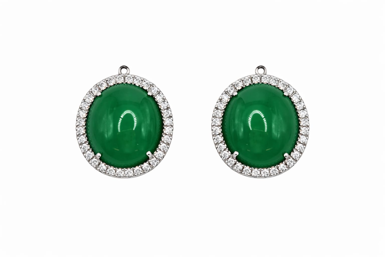 3.40 g 18 kt white gold, 0.80 ct brilliant-cut diamonds, 24.23 ct Imperial green jade cabochon cut