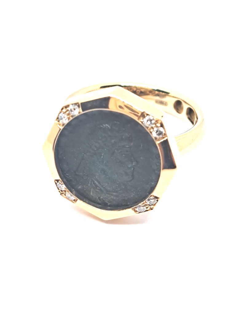 18 karaat RG, 0,10 ct diamanten briljant geslepen, antieke romeinse munt, unicum
