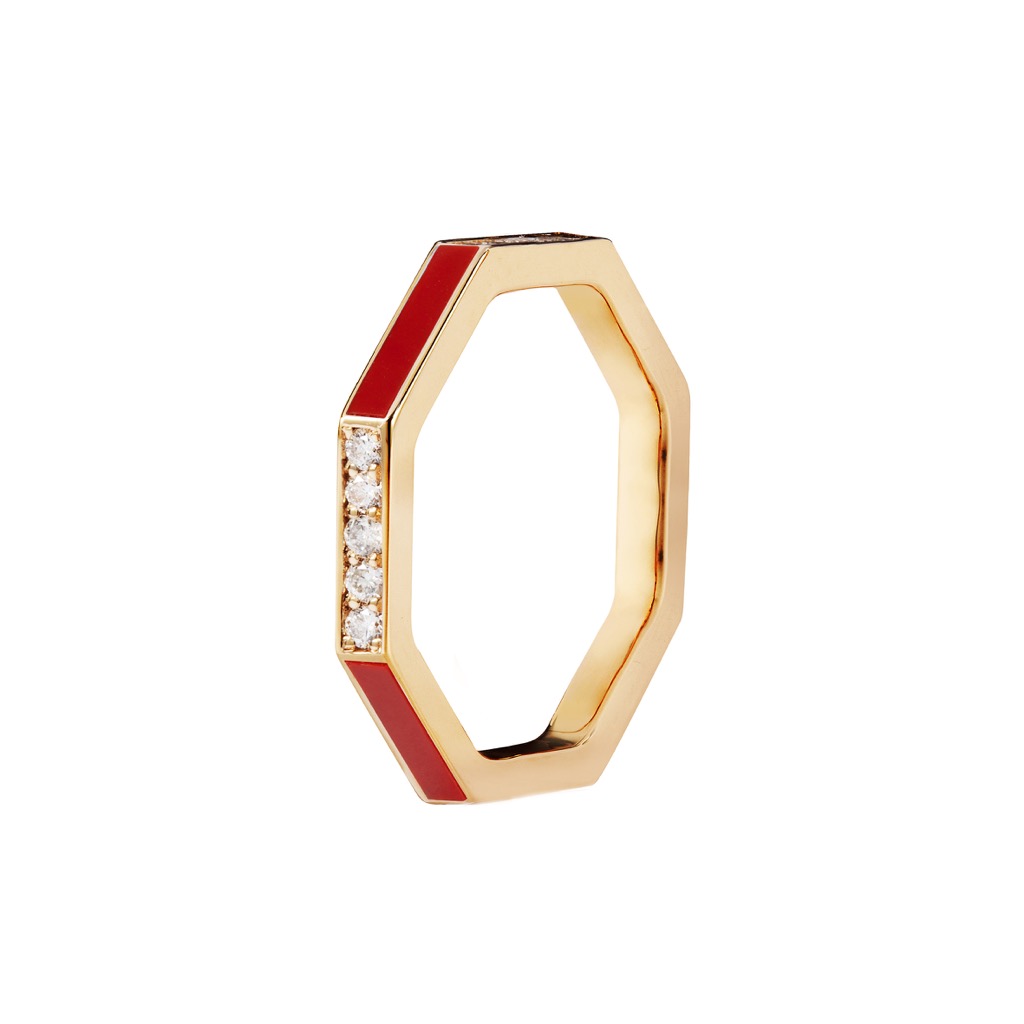 3,36 gram 18 karat RG,0,28 ct diamanten briljant geslepen, rode koraal